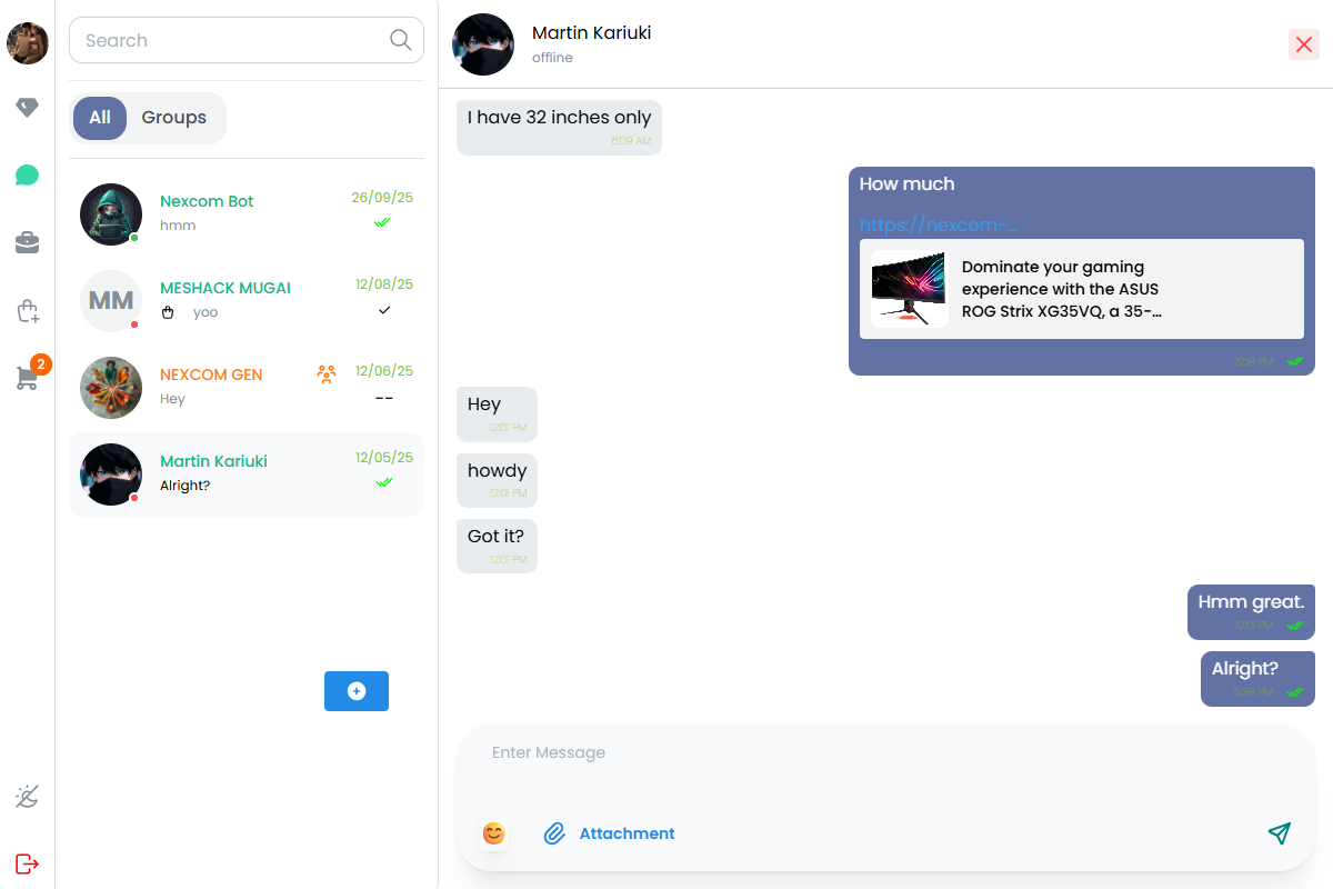 Launch your own shop in just a few clicks. Manage products, update prices, and keep your catalog fresh with an intuitive interface. Customers can chat & inquire about items in real time, while you manage your business seamlessly from one place.